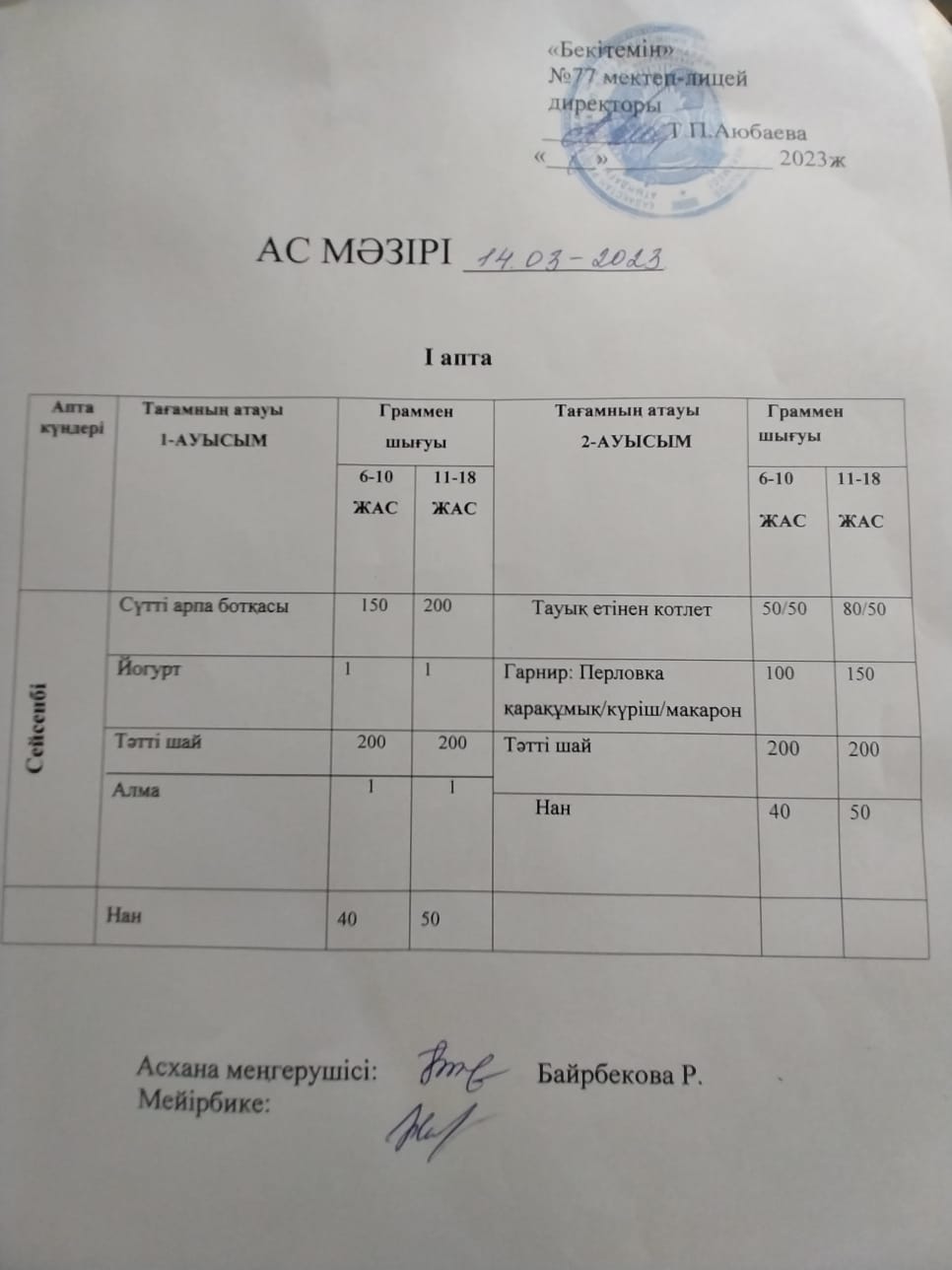 БІР КҮНДІК АС МӘЗІРІ